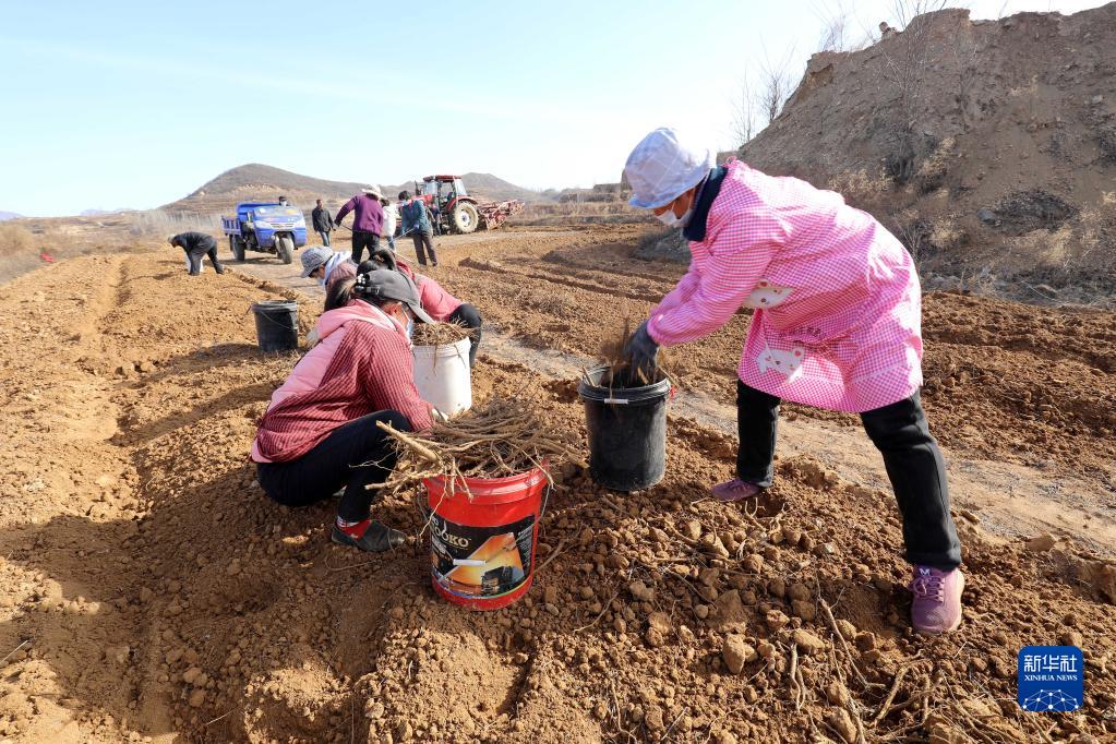 3月15日,在河北省石家莊市行唐縣上閆莊鄉中藥材種植基地,農戶(hù)在采收黃芩。