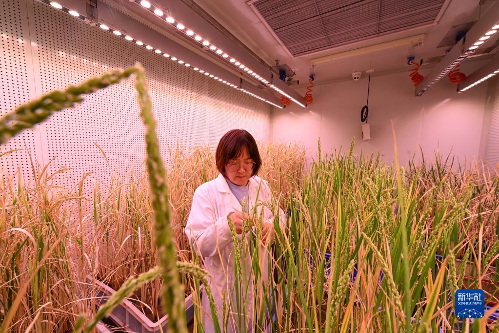3月14日,在天津市農業(yè)科學(xué)院農作物研究所,科研人員在人工氣候室內考察小站稻試驗材料性狀。
