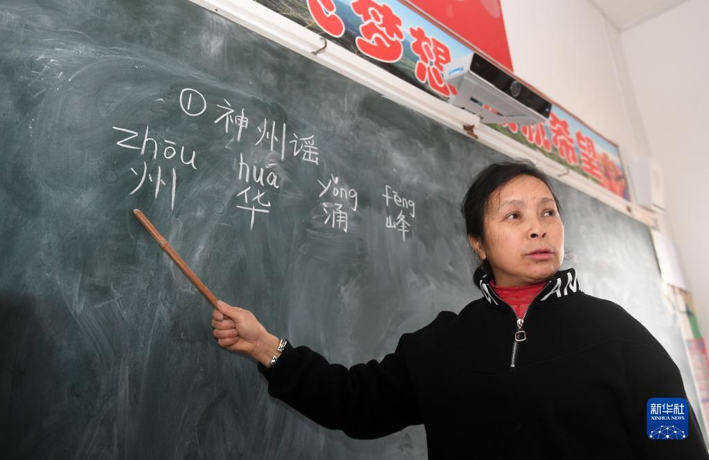 廣西金秀瑤族自治縣忠良鄉山界教學(xué)點(diǎn)的教師陶鳳英給學(xué)生上課(3月15日攝)。