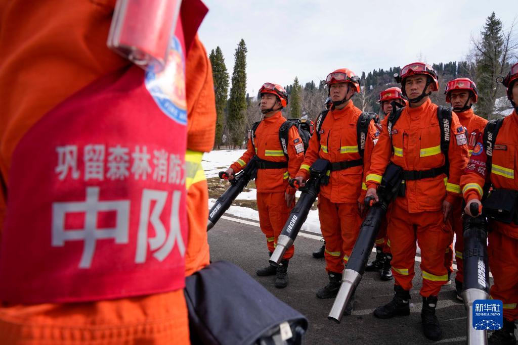3月15日,鞏留縣森林消防大隊指戰員在庫爾德寧林區整理隊伍。