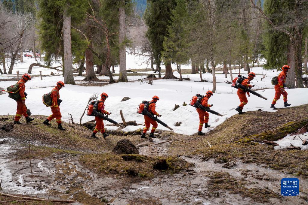 3月15日,鞏留縣森林消防大隊指戰員在庫爾德寧林區內行進(jìn)。