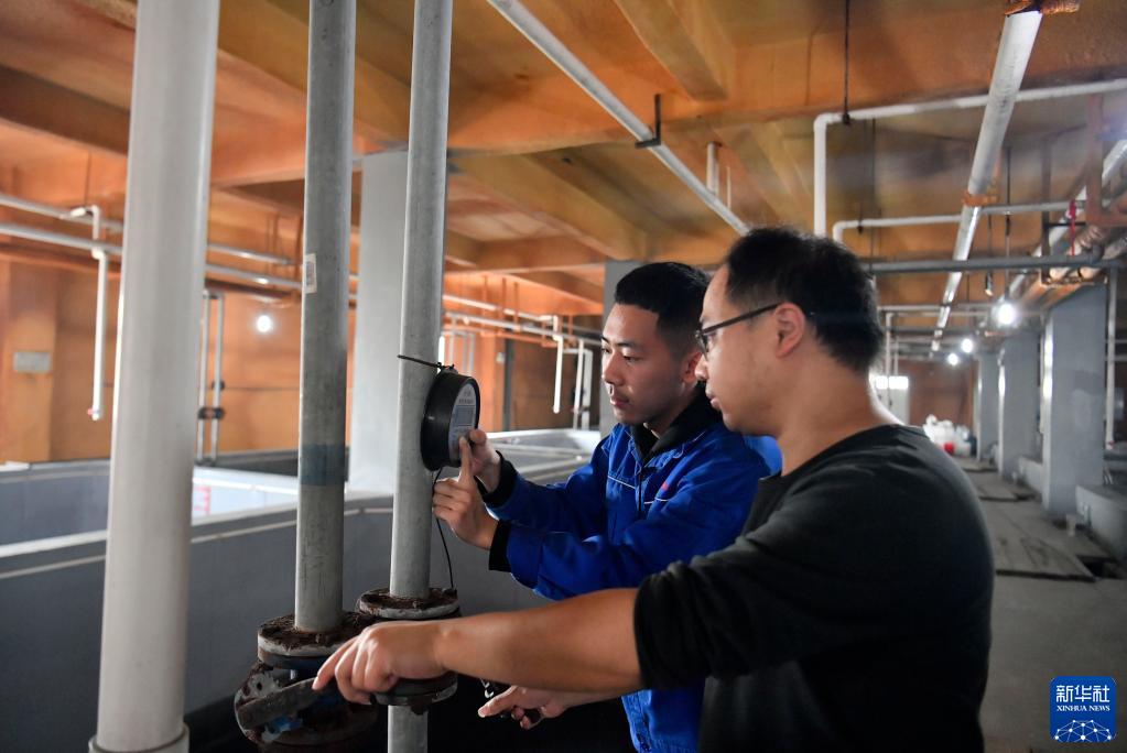 3月16日,在位于天津市濱海新區現代農業(yè)產(chǎn)業(yè)園的天津海升水產(chǎn)養殖有限公司育苗車(chē)間,工作人員查看車(chē)間環(huán)境溫度等信息。