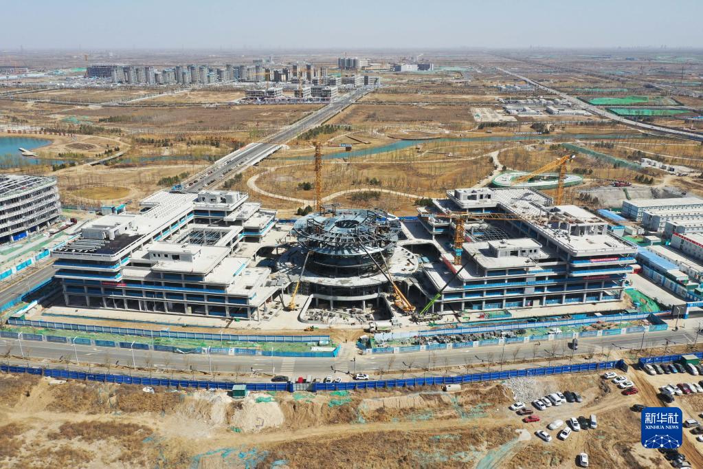 這是位于雄安新區啟動(dòng)區的中國電信智慧城市產(chǎn)業(yè)園項目現場(chǎng)(3月15日攝,無(wú)人機照片)。