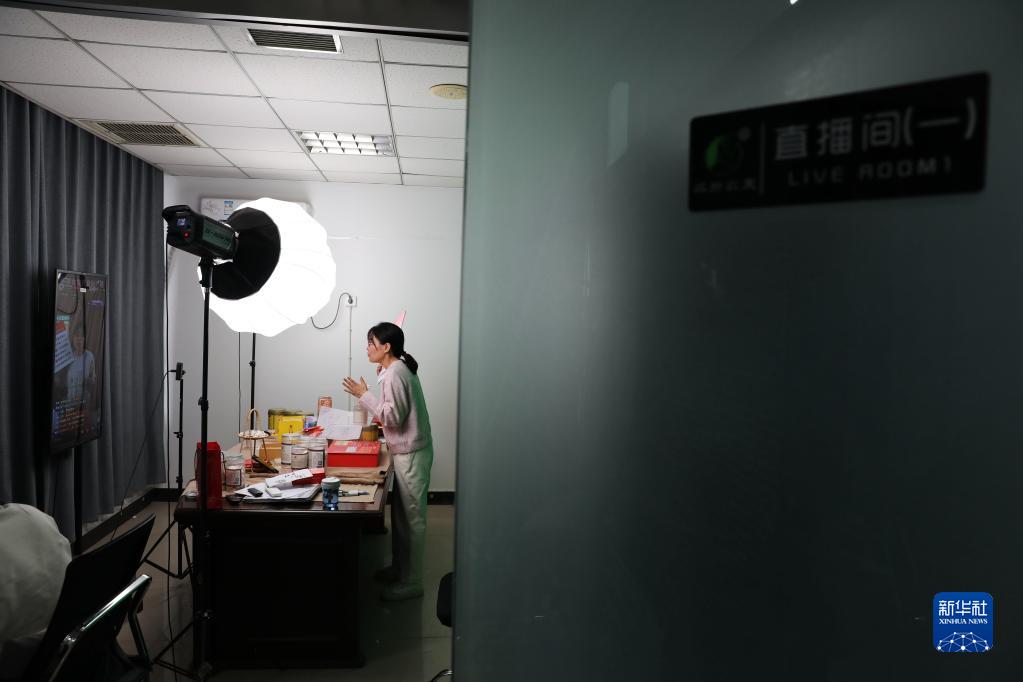 3月16日,在河南省武陟縣一家懷藥生產(chǎn)企業(yè),員工通過(guò)電商直播銷(xiāo)售懷藥產(chǎn)品。