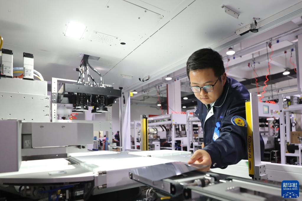 3月15日,在蘇州邁為科技股份有限公司電氣調試車(chē)間內,工作人員在對全自動(dòng)太陽(yáng)能電池絲網(wǎng)印刷設備進(jìn)行調試。