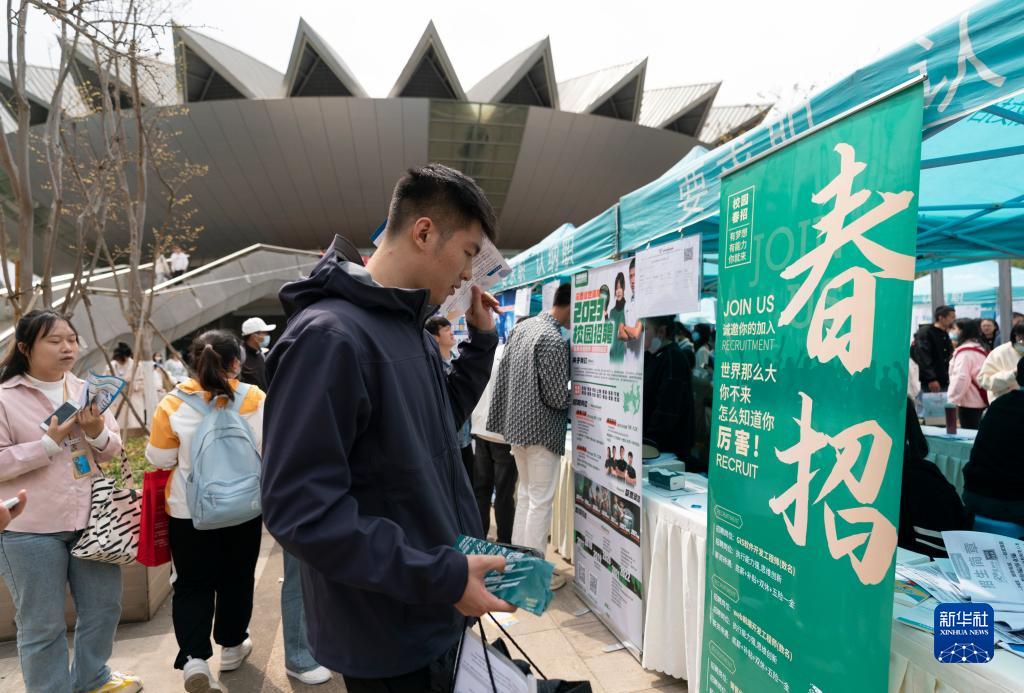 3月16日,一名求職者在云南師范大學(xué)呈貢主校區校園招聘會(huì )上查看招聘海報。