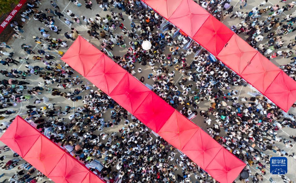 這是3月16日拍攝的云南師范大學(xué)呈貢主校區校園招聘會(huì )現場(chǎng)(無(wú)人機照片)。