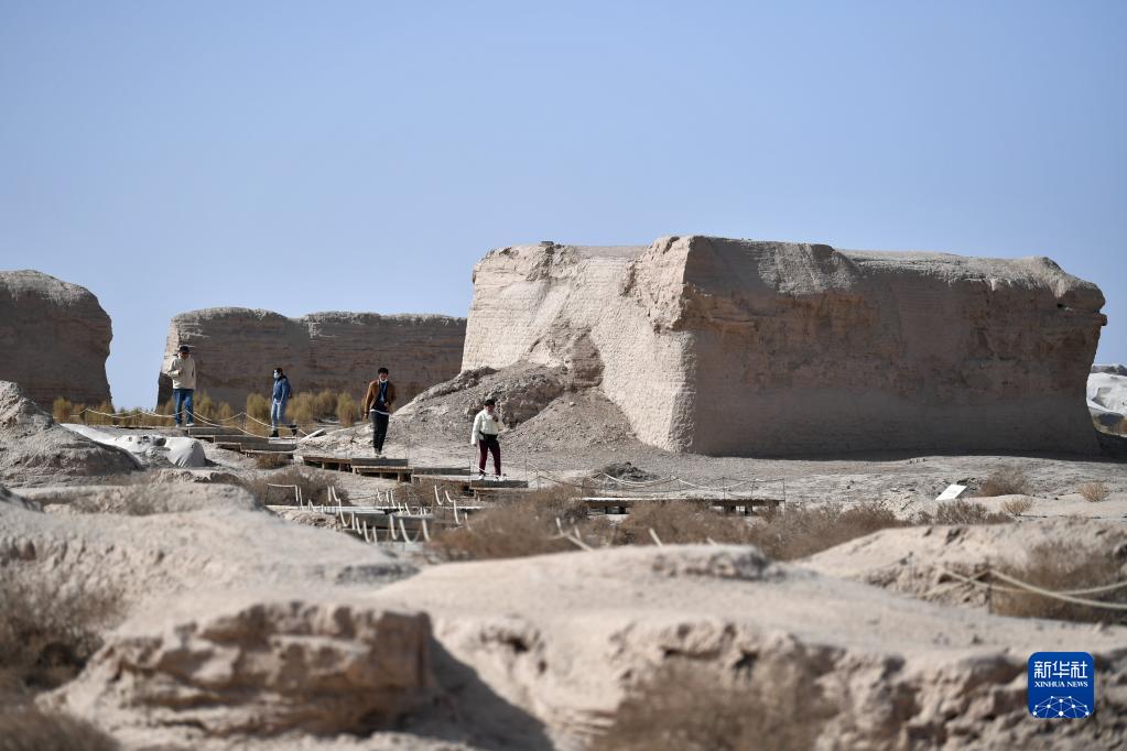3月16日,游客在鎖陽(yáng)城遺址內參觀(guān)。