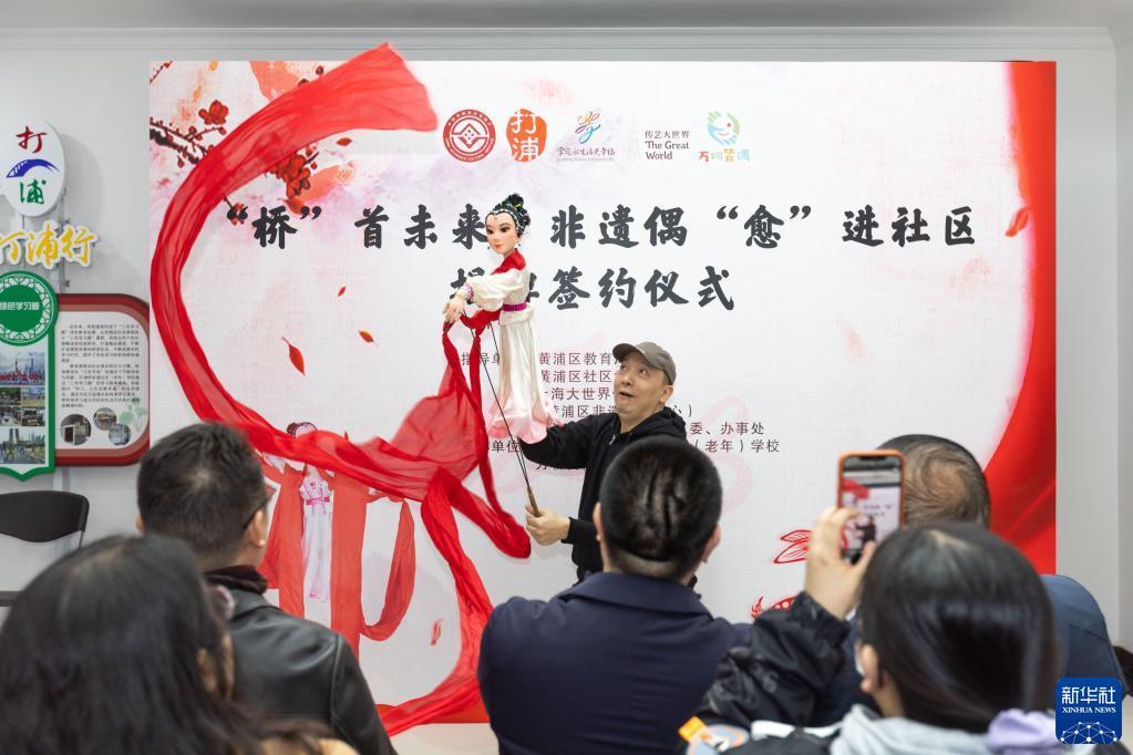 當日,上海市黃浦區打浦橋街道開(kāi)展“‘橋’首未來(lái)·非遺偶‘愈’”活動(dòng),推出非遺海派木偶課,讓更多人了解非遺技藝,感受非遺魅力。