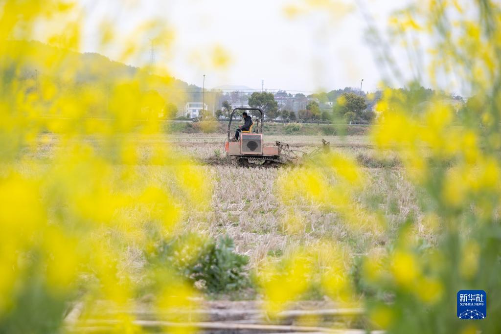 3月16日,張必超在諸暨市浣東街道白魚(yú)潭古村的農田內調試旋耕機。
