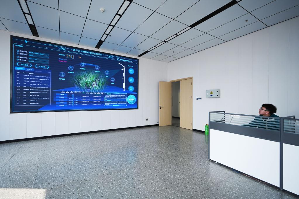 “在這兒工作兩年沒(méi)被曬黑,憑借的就是農田里的各種新技術(shù)?!迸_曉林笑著(zhù)說(shuō)。有了指揮調度平臺,氣象、水質(zhì)、墑情、苗情、蟲(chóng)情“一屏統攬”,物聯(lián)網(wǎng)控制著(zhù)250多個(gè)自動(dòng)化噴灌設備和墑情、蟲(chóng)情等智能終端。