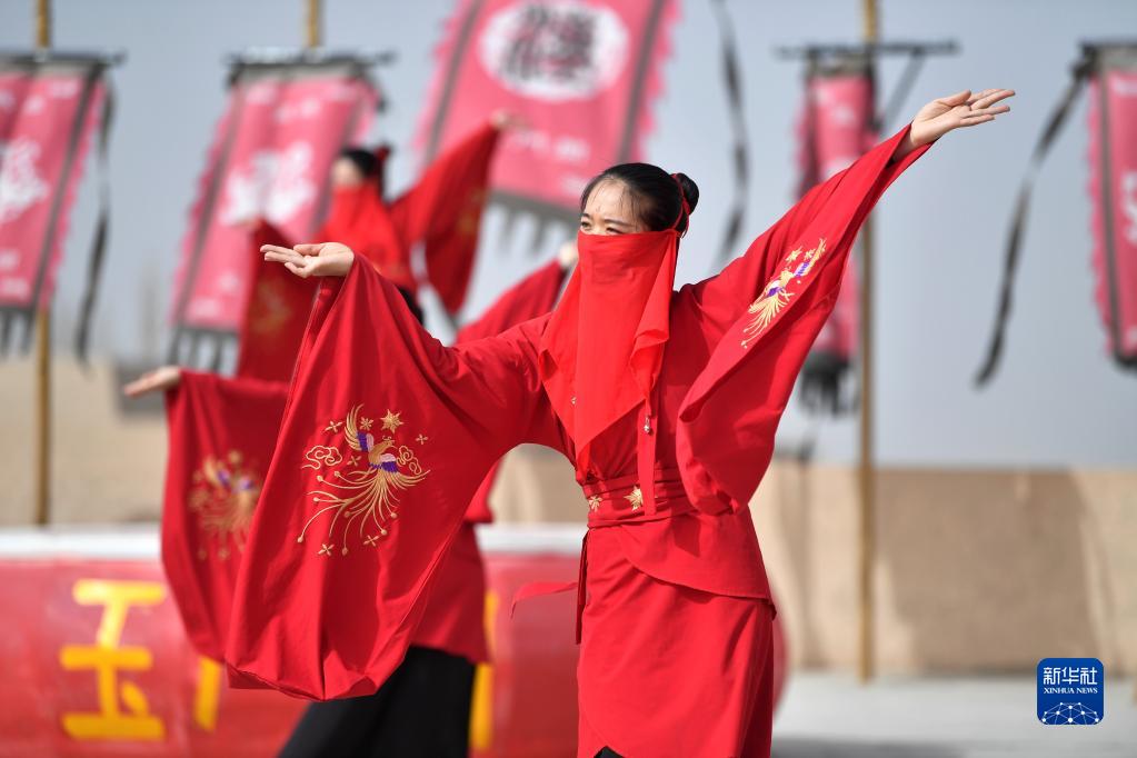 演員在玉門(mén)關(guān)景區為游客表演(3月17日攝)。