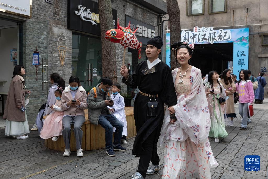 當日,為期三天的2023年中華民族服飾展演暨閬中漢服紀在四川省閬中古城舉行,全國各地傳統服飾愛(ài)好者齊聚閬中古城,穿漢服、游古城,“以服會(huì )友”。