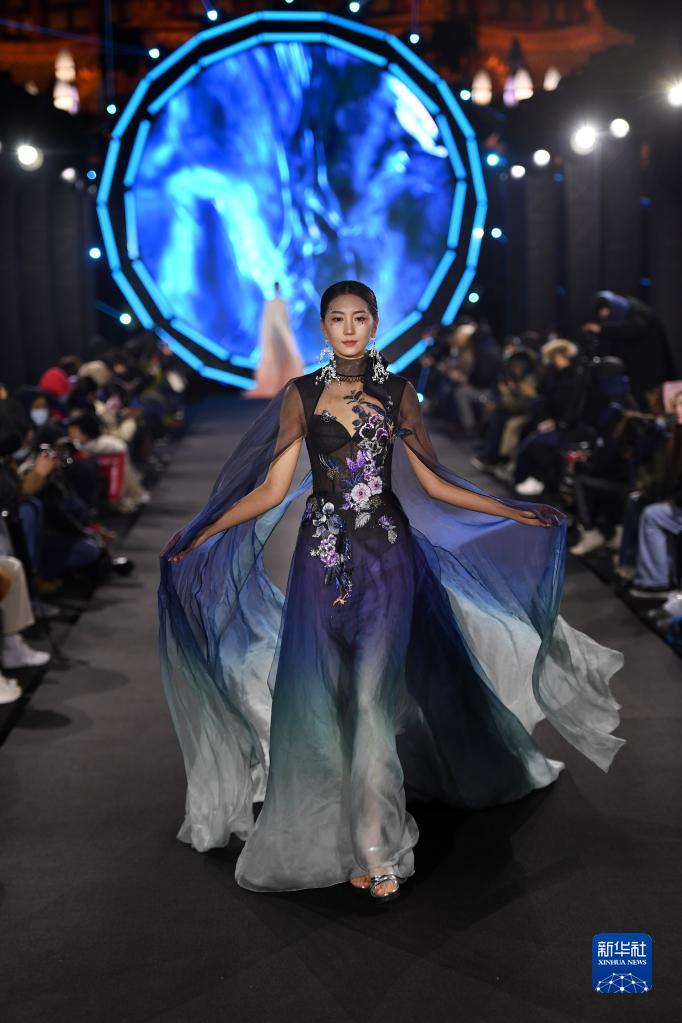 當晚,山東省青島市2023上街里·逛春天旅游藝術(shù)季華服時(shí)裝秀在棧橋景區回瀾閣前舉行。