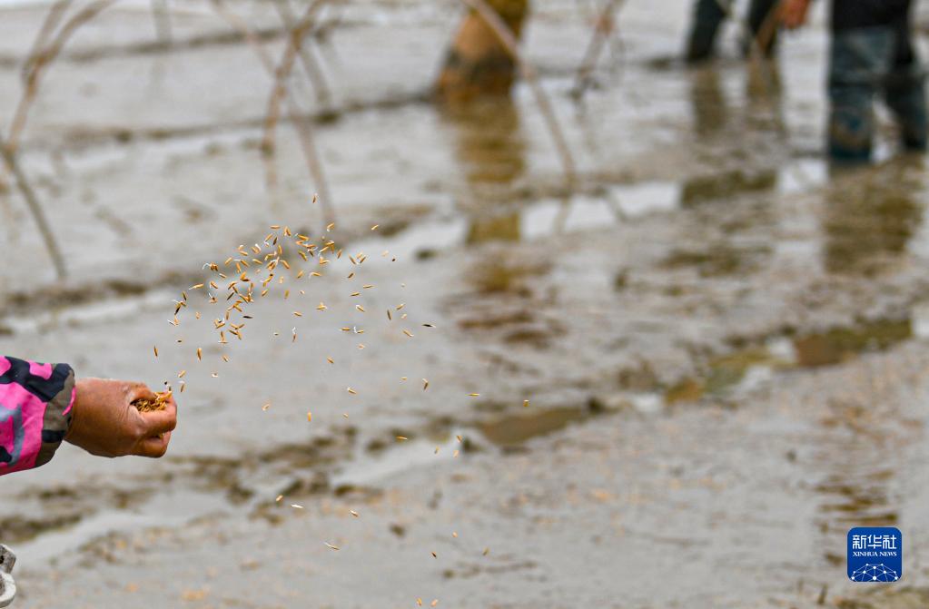 3月18日,在常寧市三角塘鎮長(cháng)江村,村民播種早稻。