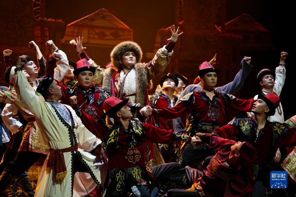 3月18日,在北京民族劇院,演員表演歌舞劇《瑪納斯》。