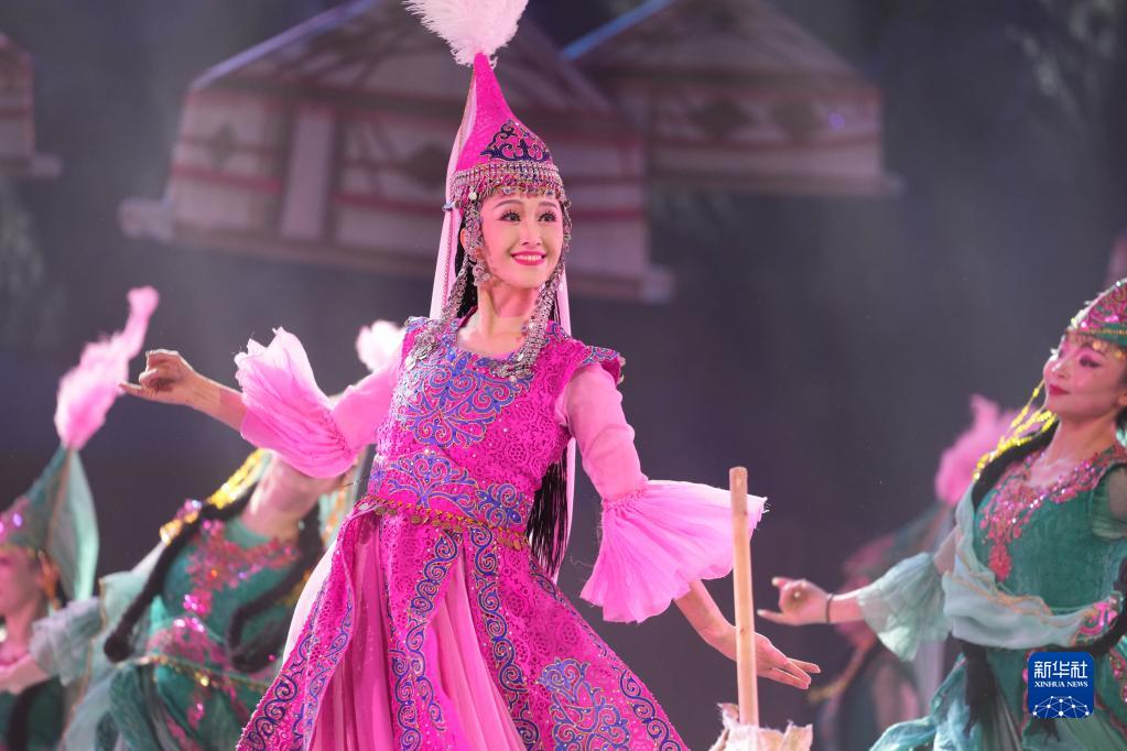 3月18日,在北京民族劇院,演員表演歌舞劇《瑪納斯》。