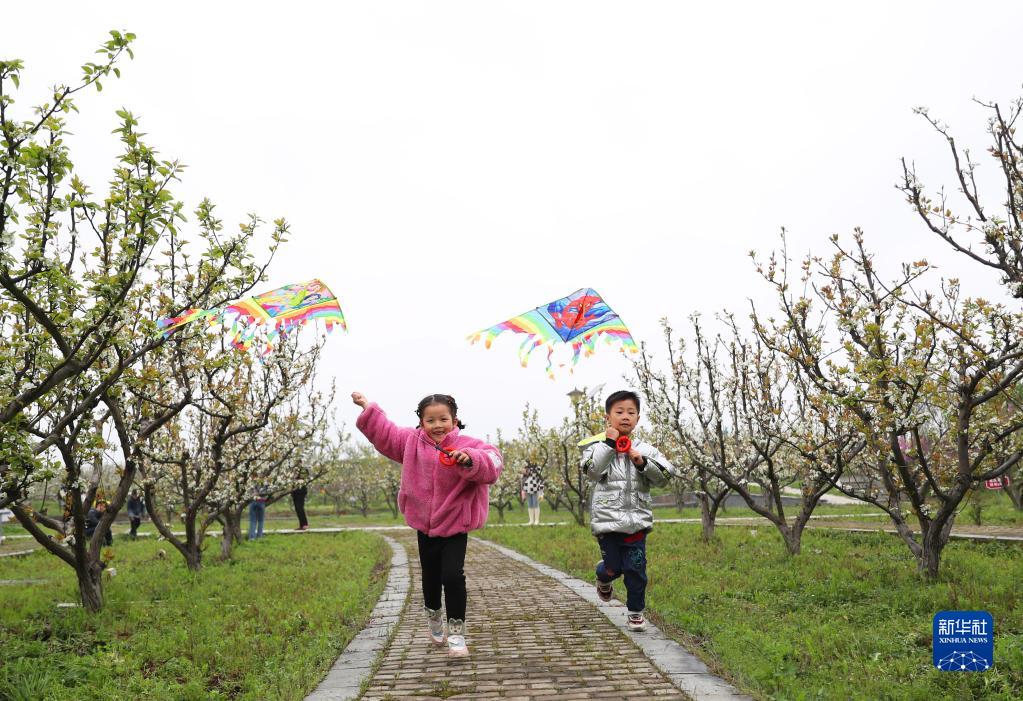 3月18日,在湖南省衡陽(yáng)市珠暉區茶山坳鎮金甲梨園,兩位小朋友在放風(fēng)箏。