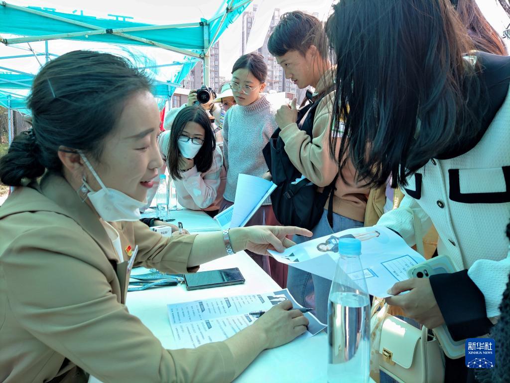 3月16日,云南師范大學(xué)教師左文君(左)在招聘會(huì )上與學(xué)生交流。新華社記者 林碧鋒 攝