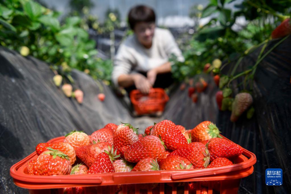 3月18日,在雙灤區大貴口村一處大棚,農民在采摘草莓。