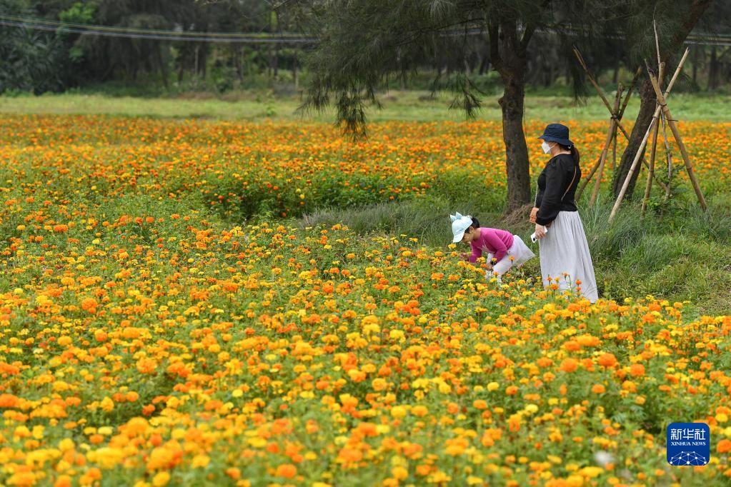 近日,海南省文昌市花舞田園鄉村文化旅游區鮮花盛開(kāi),吸引游客前來(lái)踏青游玩,帶動(dòng)春日消費。