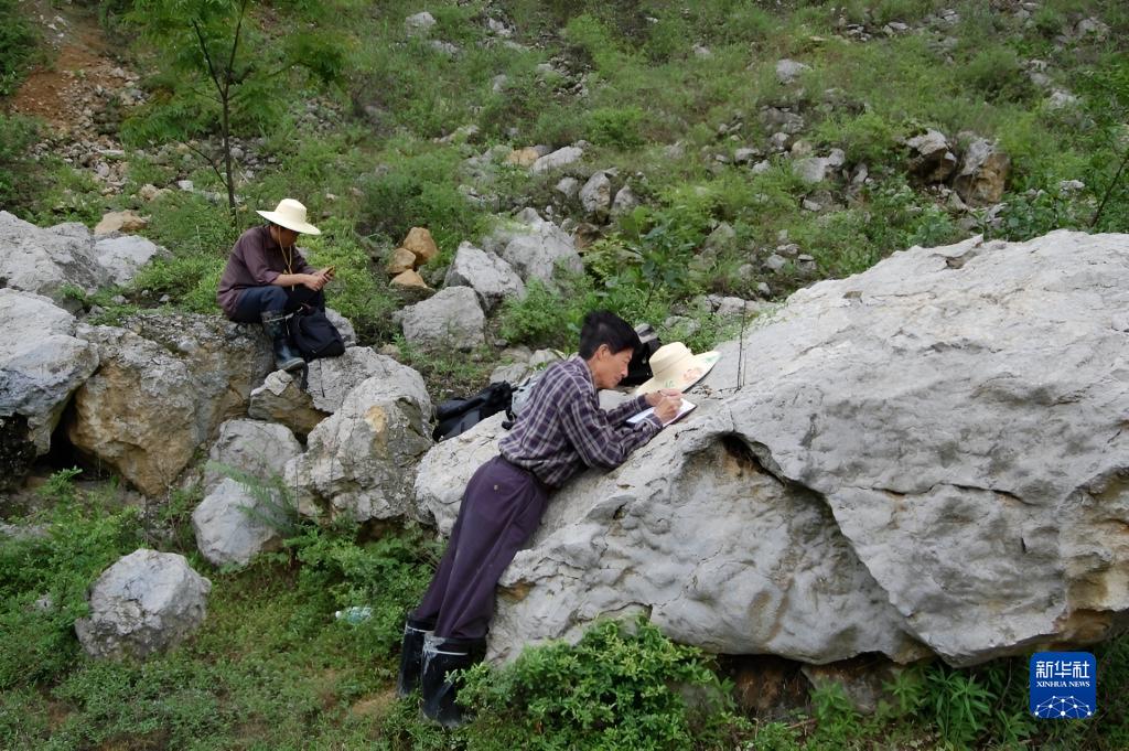2008年,吳熙純(右)在四川西北地區野外科考時(shí)趴在一處生物礁上做記錄(資料照片)。