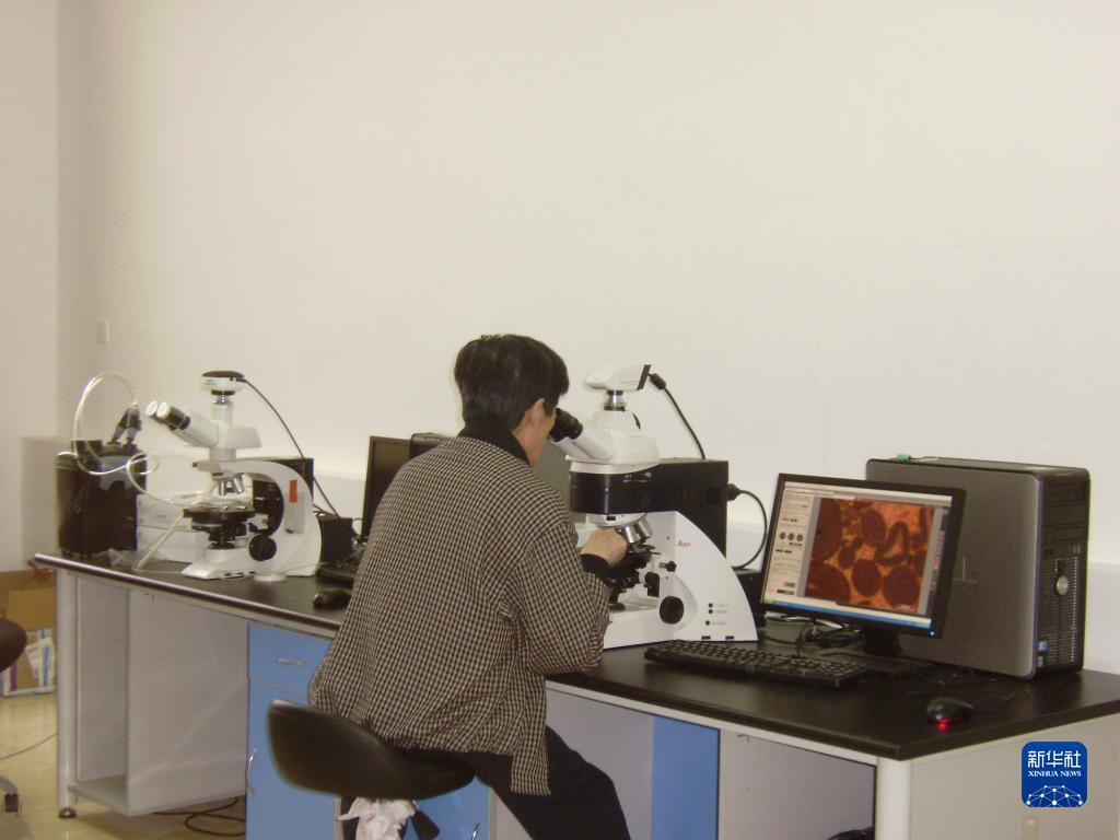 2011年,吳熙純在實(shí)驗室用顯微鏡觀(guān)察海綿化石切片(資料照片)。