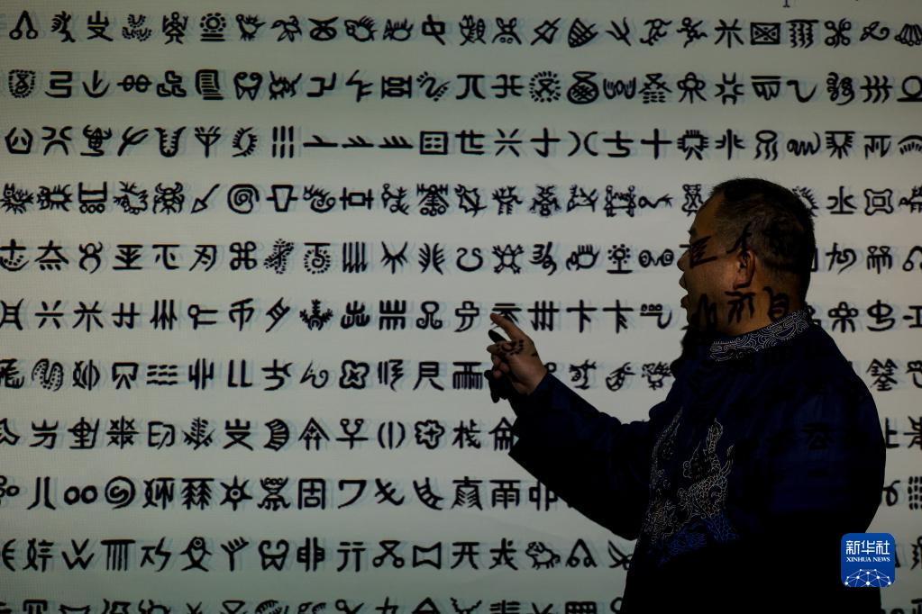 3月9日,三都水族自治縣水族文化研究院研究員潘政波在展示使用水書(shū)輸入法錄入的水書(shū)文字。