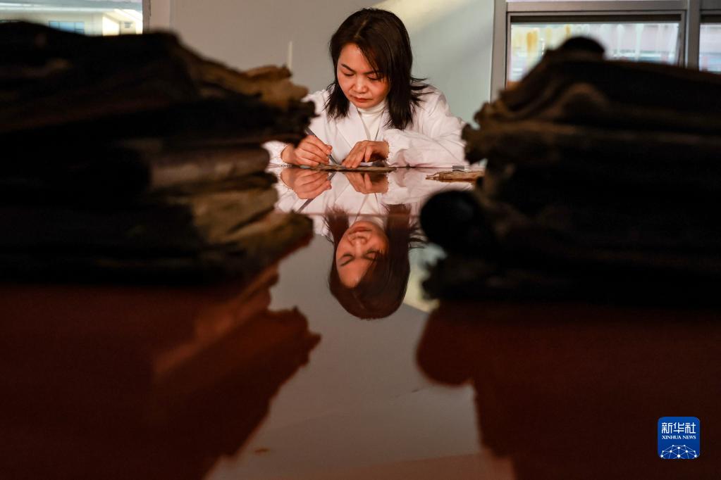 3月8日,荔波縣檔案史志館的工作人員在整理水書(shū)文獻。