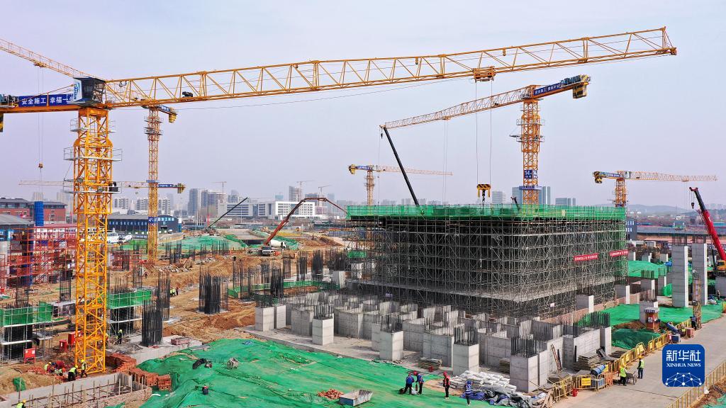 濟南地鐵6號線(xiàn)位里莊車(chē)輛段施工現場(chǎng)(3月19日攝,無(wú)人機照片)。