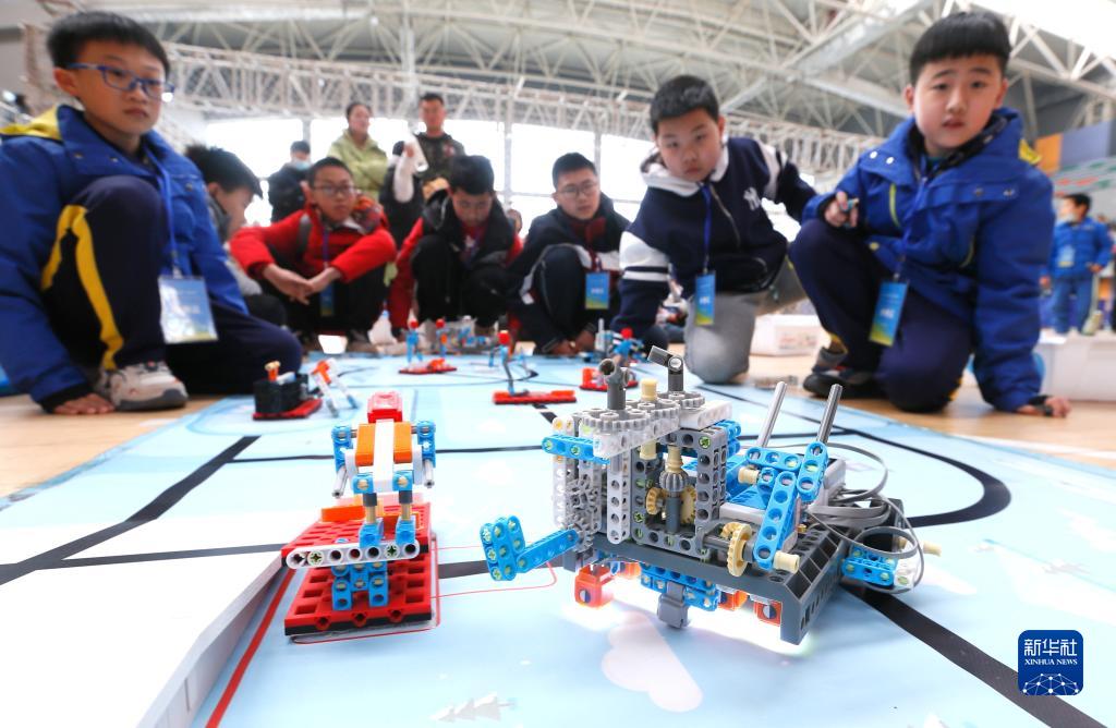 3月19日,青島市即墨區的學(xué)生在參加“機器人冰雪運動(dòng)會(huì )”項目比賽。
