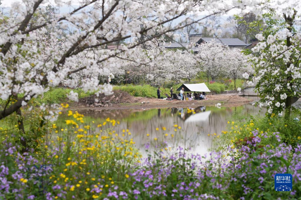 3月19日,游人在重慶市北碚區澄江鎮五一村“櫻花橘香”農業(yè)公園的櫻花樹(shù)下露營(yíng)游玩。