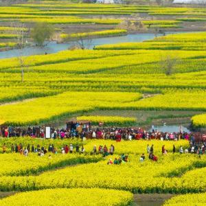 3月19日,游客在江蘇興化千垛菜花風(fēng)景區游覽(無(wú)人機照片)。