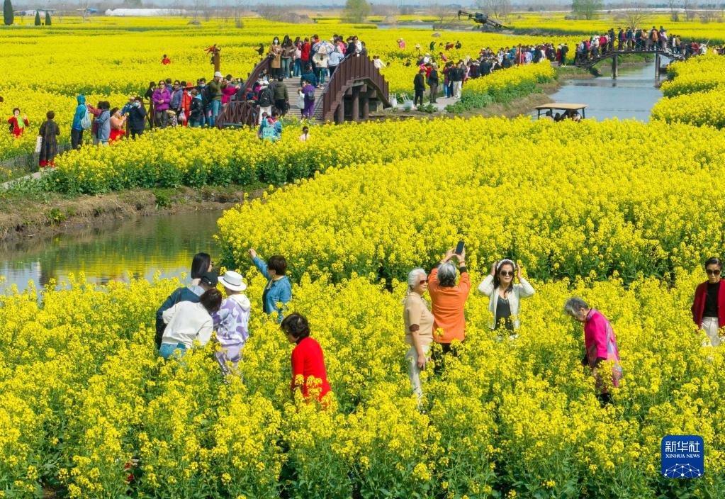 3月19日,游客在江蘇興化千垛菜花風(fēng)景區游覽(無(wú)人機照片)。