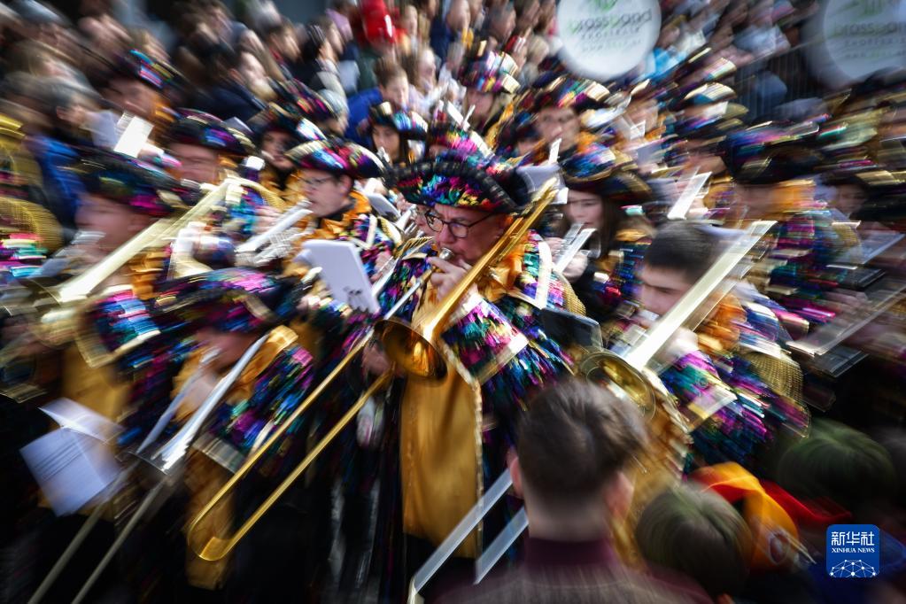 3月19日,在比利時(shí)東部的小城斯塔沃洛,樂(lè )手在狂歡節游行上演奏。