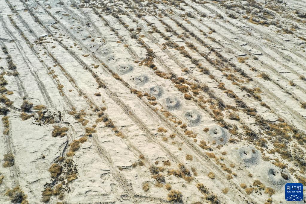 這是在新疆吐魯番市高昌區艾丁湖鎮拍攝的坎兒井豎井口(3月9日攝,無(wú)人機照片)。