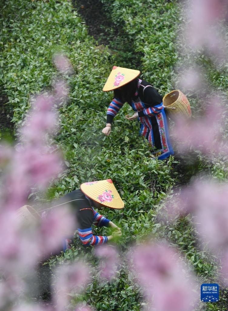 3月20日,在湖南衡陽(yáng)常寧市塔山瑤族鄉,茶農在茶園采茶。