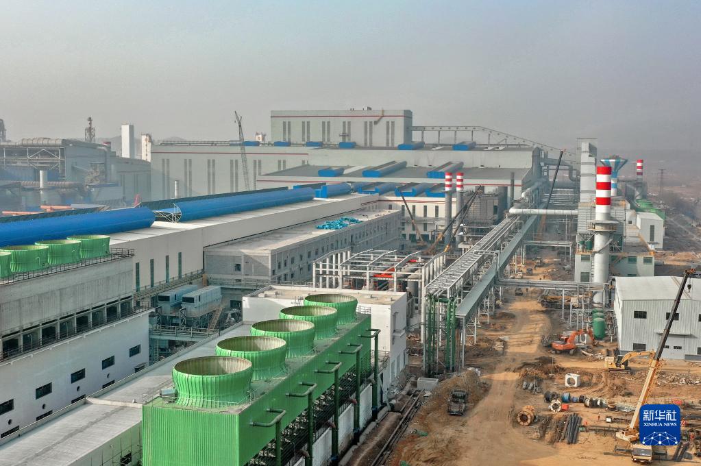 3月20日,工人在項目建設工地施工(無(wú)人機照片)。