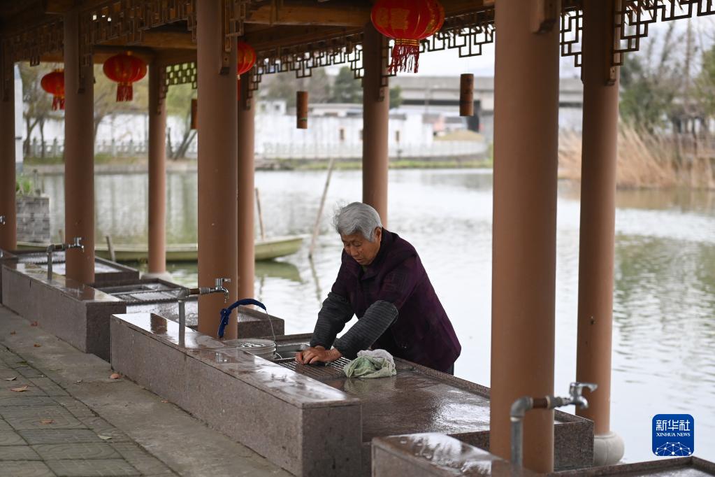 一位村民在浙江省寧波市北侖區柴橋街道新曹村的河埠頭洗衣服(3月16日攝)。當地的河埠頭建設與民風(fēng)民俗相結合。截至目前,北侖區已投用生態(tài)河埠頭305個(gè),解決洗滌污水直排問(wèn)題,河道水質(zhì)得到明顯改觀(guān)。
