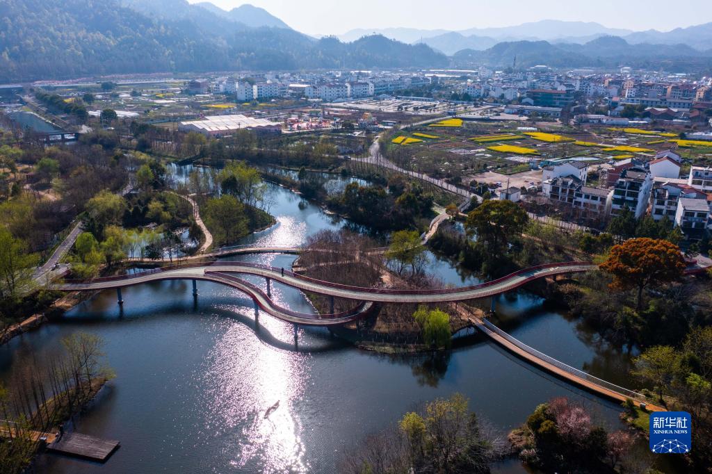 空中俯瞰浙江省金華市浦江縣的翠湖(3月14日攝,無(wú)人機照片)。翠湖位于浦陽(yáng)江城區段最上游,由翠湖為主、3個(gè)獨立小湖泊、8個(gè)生態(tài)小島組成浦江縣最大的水環(huán)境濕地公園,是浦江“五水共治”工作成效的縮影。經(jīng)過(guò)整治,翠湖曾經(jīng)被嚴重污染的水體得到極大改善。為方便游客觀(guān)光游覽,湖邊設有親水平臺、環(huán)湖綠道、生態(tài)走廊。