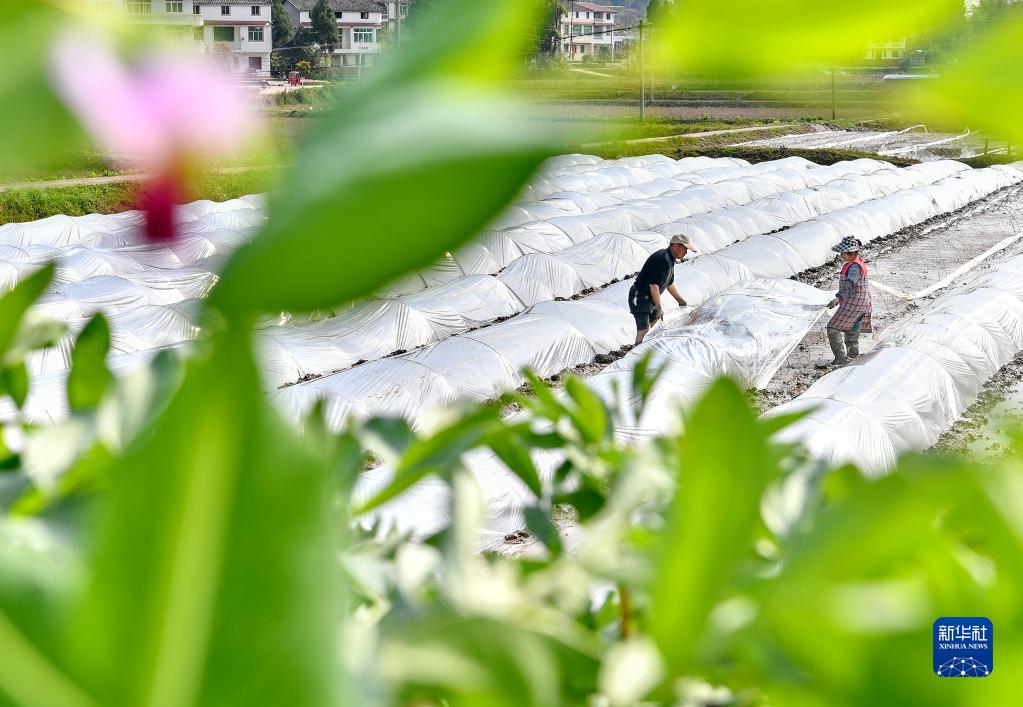 3月21日,四川省廣安市岳池縣茍角鎮紅朝門(mén)村村民在覆蓋農膜,進(jìn)行水稻育秧。