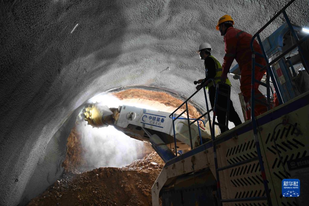 3月21日,中鐵四局施工人員在巢馬城際鐵路新大金山隧道進(jìn)行貫通施工。