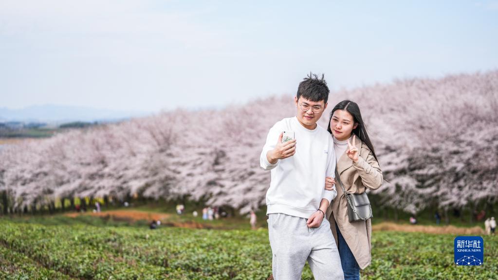 近日,貴州省貴安新區櫻花園內的2.4萬(wàn)畝櫻花競相綻放,如雪似霞,吸引游客前來(lái)賞花觀(guān)光。