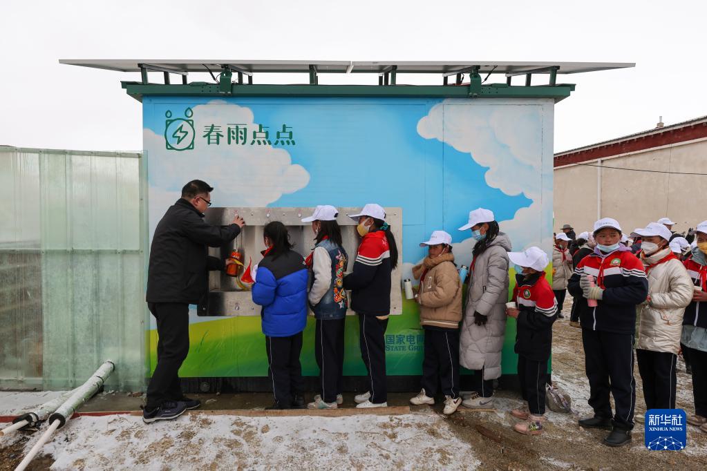 3月21日,那曲市色尼區香茂鄉小學(xué)的同學(xué)們在新啟用的凈水站打水。