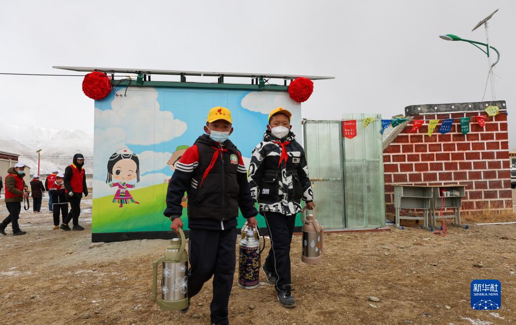 3月21日,那曲市色尼區香茂鄉小學(xué)的同學(xué)們在新啟用的凈水站打水。