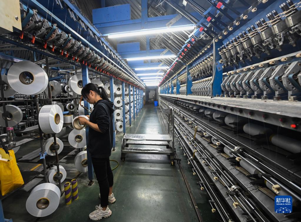 3月21日,位于諸暨市安華鎮工業(yè)園區的浙江錦事達化纖有限公司數字化車(chē)間內,自動(dòng)化生產(chǎn)設備在生產(chǎn)高品質(zhì)錦綸彈力絲。