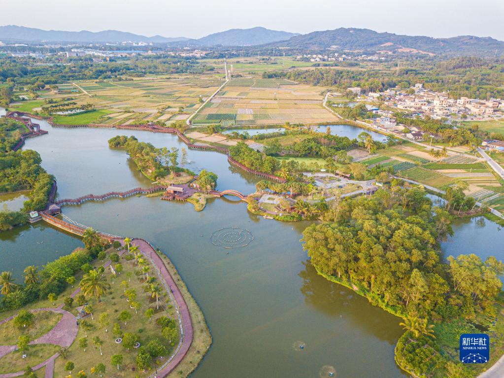 3月20日在海南省屯昌縣拍攝的文贊生態(tài)濕地公園。該公園由昔日受污的文贊水庫變身而來(lái)。