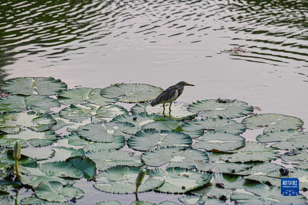 水鳥(niǎo)棲息在海南省屯昌縣街心湖(3月19日攝)。