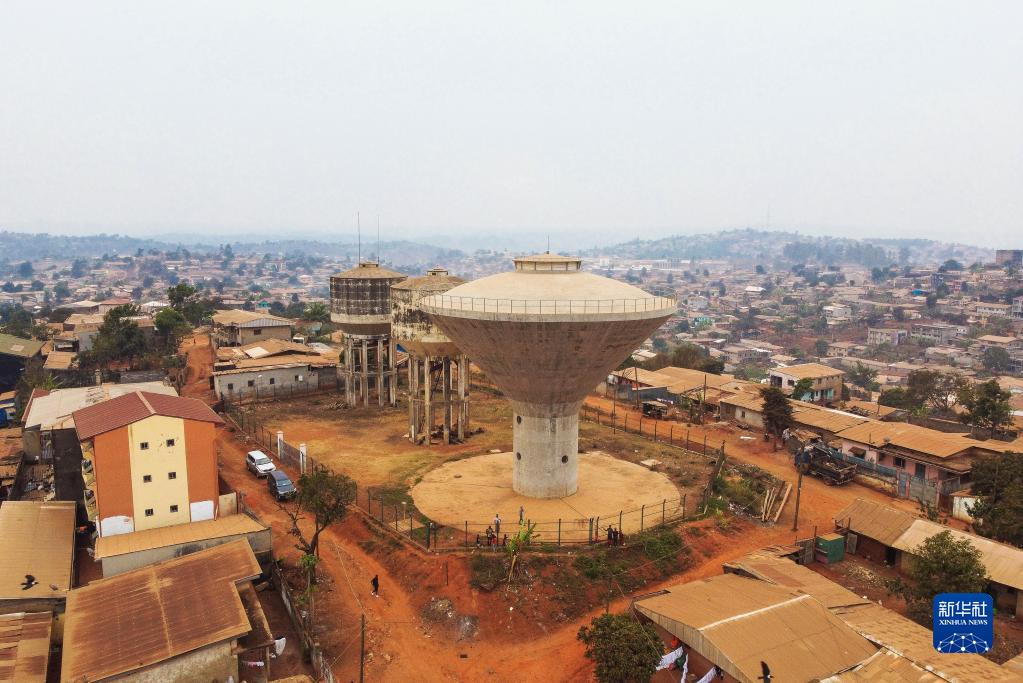 這是3月2日在喀麥隆西部大區巴富薩姆拍攝的中企援建的水塔(無(wú)人機照片)。