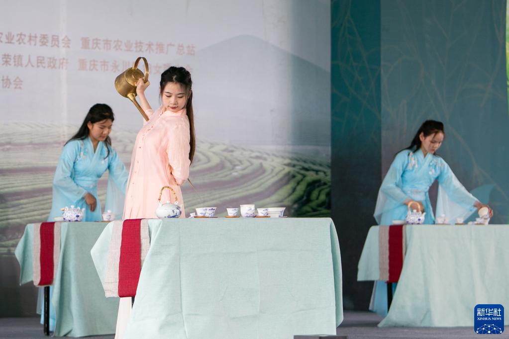 3月22日,在重慶市永川區永榮鎮鄉村振興就業(yè)園,演藝人員在表演茶藝。